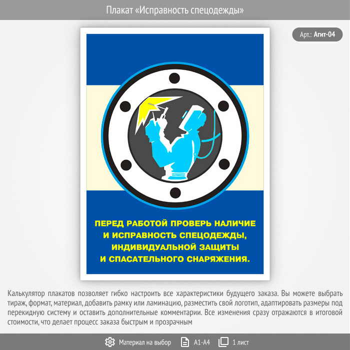 Плакат «Исправность спецодежды» (Агит-04, 1 лист) в Верее купить