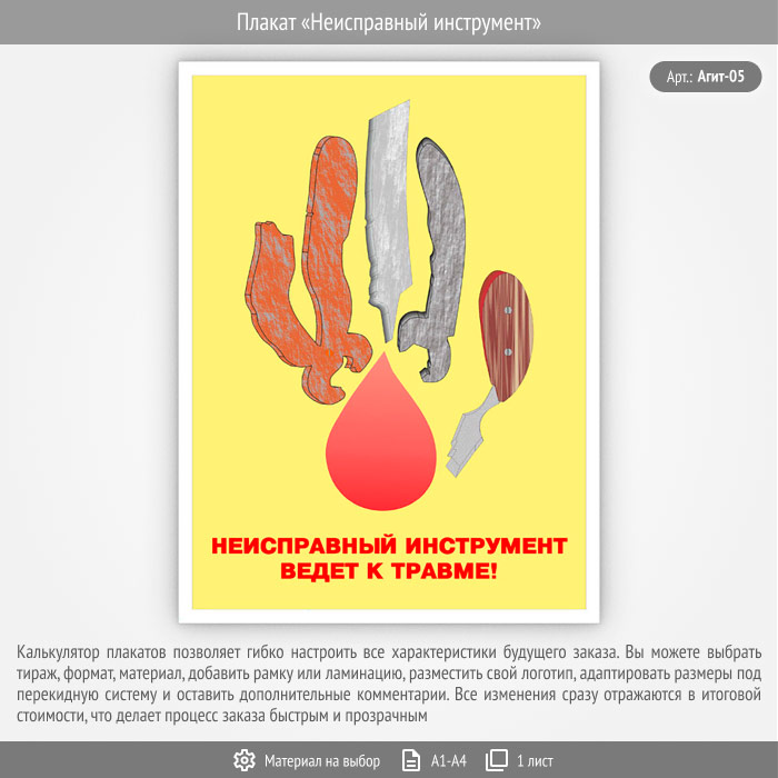 Плакат «Неисправный инструмент» (Агит-05, 1 лист) в Верее купить