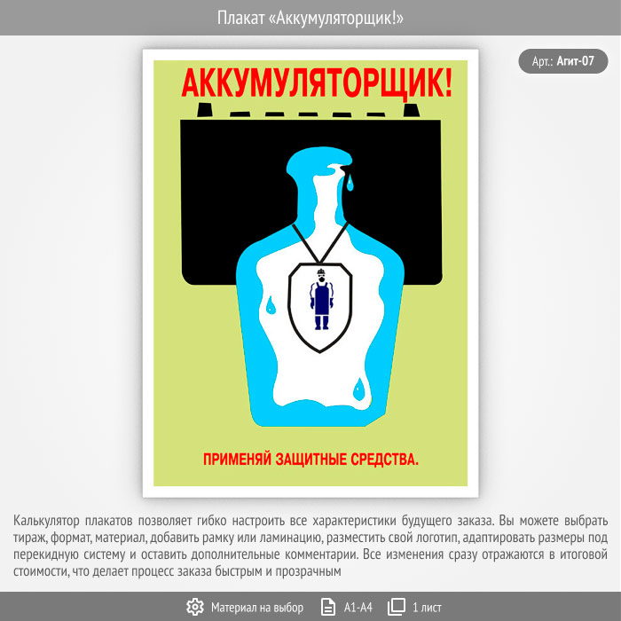 Плакат «Аккумуляторщик!» (Агит-07, 1 лист) в Верее купить