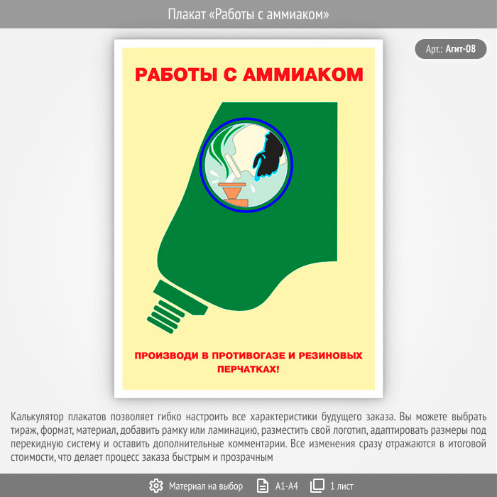 Плакат «Работы с аммиаком» (Агит-08, 1 лист) в Верее купить