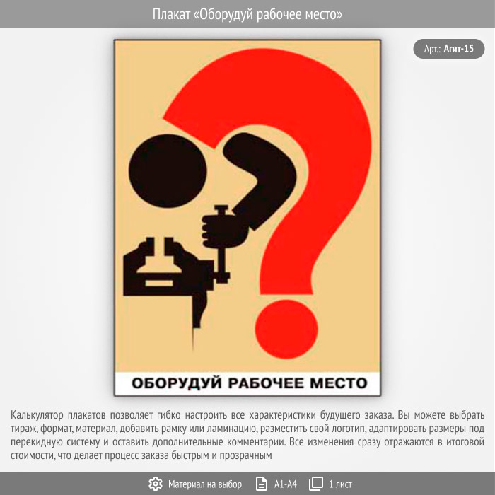 Плакат «Оборудуй рабочее место» (Агит-15, 1 лист) в Верее купить