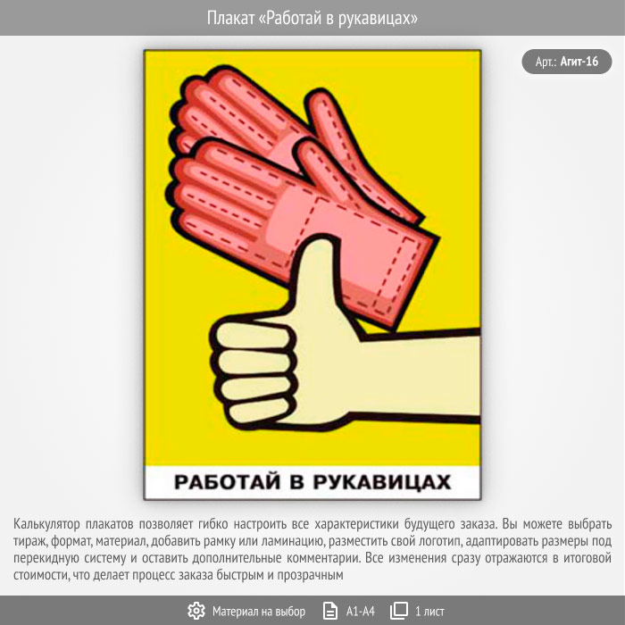 Плакат «Работай в рукавицах» (Агит-16, 1 лист) в Верее купить