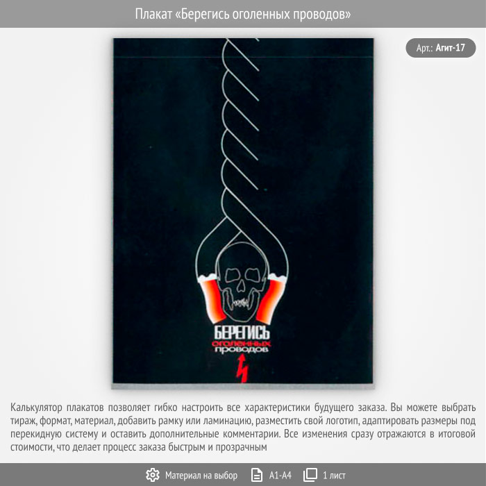 Плакат «Берегись оголенных проводов» (Агит-17, 1 лист) в Верее купить