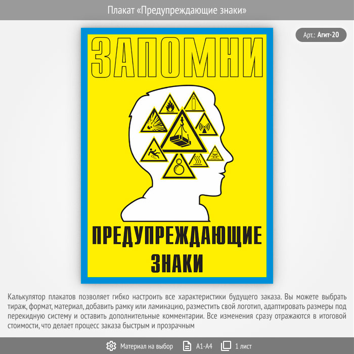 Плакат «Предупреждающие знаки» (Агит-20, 1 лист) в Верее купить