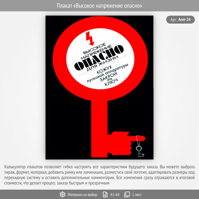 Плакат «Высокое напряжение опасно» (Агит-24, 1 лист) в Верее купить