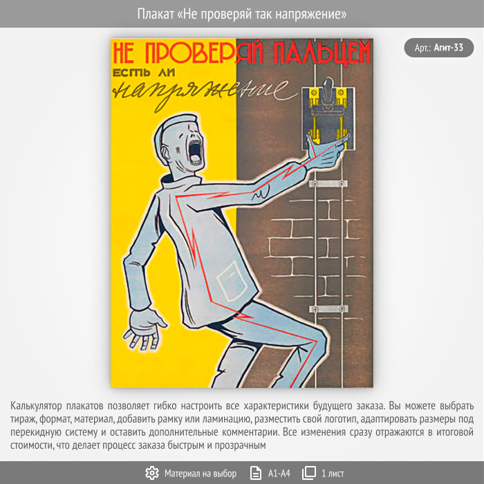 Плакат «Не проверяй так напряжение» (Агит-33, 1 лист) в Верее купить