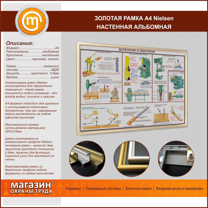 Багетная настенная рамка «Nielsen» А4 формата, альбомная, матовое золото в Верее купить