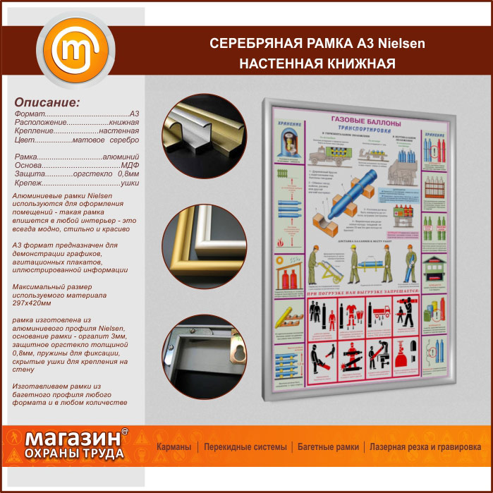 Багетная настенная рамка «Nielsen» А3 формата, книжная, матовое серебро в Верее купить