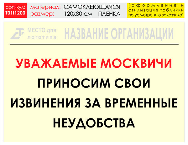 Баннер «Извинения», T01 (самоклеящаяся плёнка, 120х90 см) в Верее купить