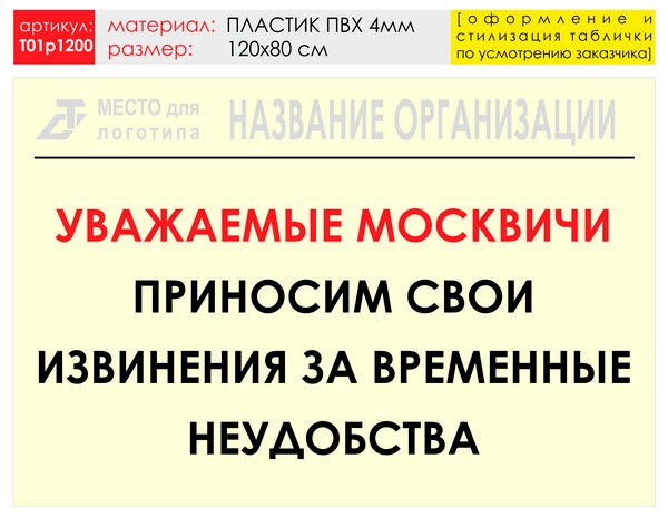 Баннер «Извинения», T01 (пластик 4 мм, 120х90 см) в Верее купить