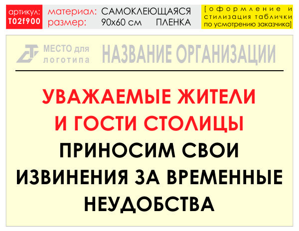 Баннер «Извинения», T02 (самоклеящаяся плёнка, 90х60 см) в Верее купить
