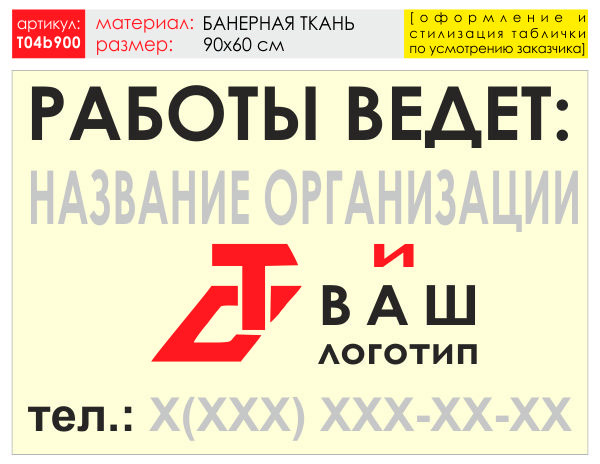 Баннер «Работы ведет», T04 (баннерная ткань, 90х60 см) в Верее купить