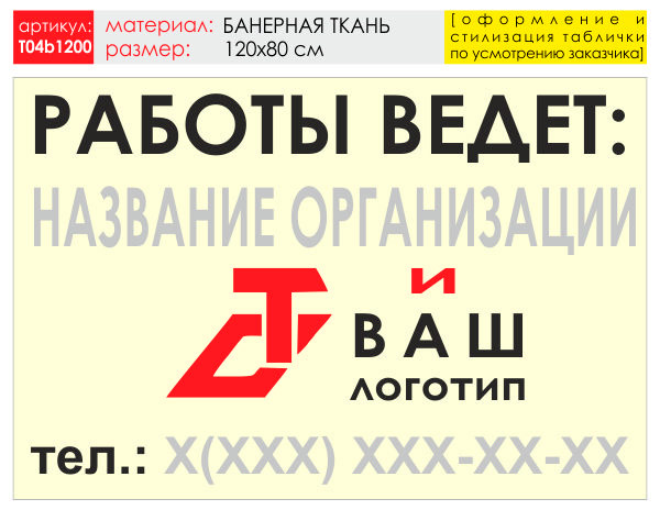 Баннер «Работы ведет», T04 (баннерная ткань, 120х90 см) в Верее купить