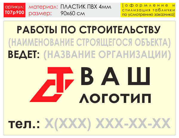 Баннер «Работы по строительству», T07 (пластик 4 мм, 90х60 см) в Верее купить