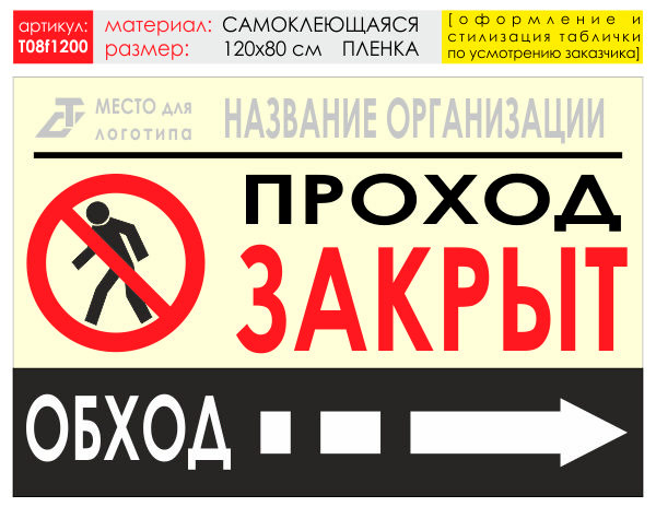 Баннер «Обход справа», T08 (самоклеящаяся плёнка, 120х90 см) в Верее купить