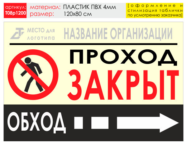 Баннер «Обход справа», T08 (пластик 4 мм, 120х90 см) в Верее купить