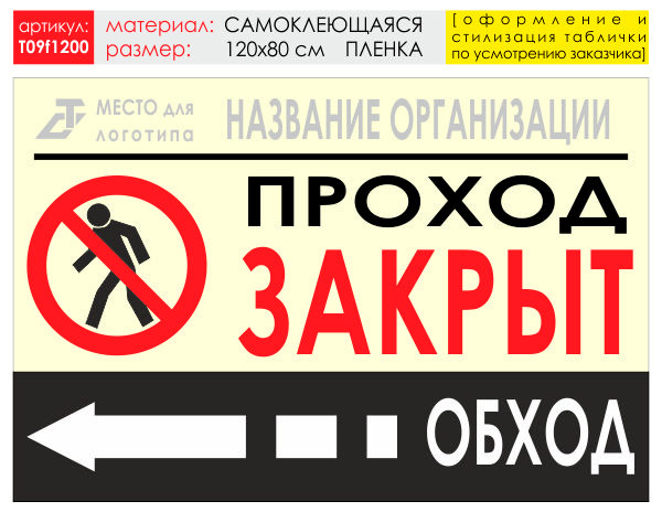 Баннер «Обход слева», T09 (самоклеящаяся плёнка, 120х90 см) в Верее купить
