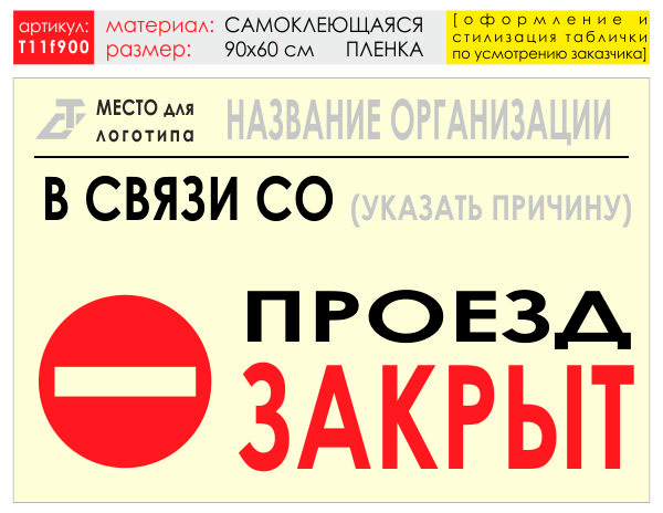 Баннер «Проезд закрыт», T11 (самоклеящаяся плёнка, 90х60 см) в Верее купить