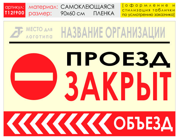 Баннер «Объезд слева», T12 (самоклеящаяся плёнка, 90х60 см) в Верее купить