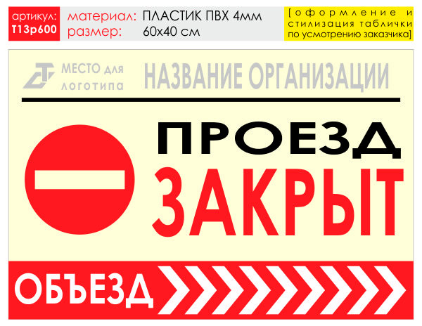 Баннер «Объезд справа», T13 (пластик 4 мм, 60х40 см) в Верее купить