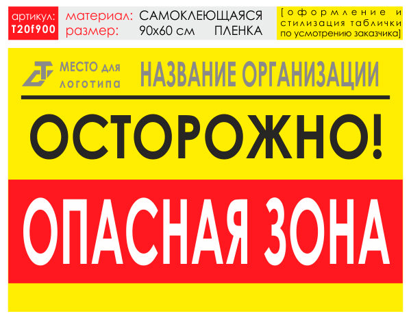 Баннер «Опасная зона», T20 (самоклеящаяся плёнка, 90х60 см) в Верее купить