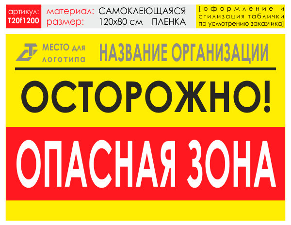 Баннер «Опасная зона», T20 (самоклеящаяся плёнка, 120х90 см) в Верее купить