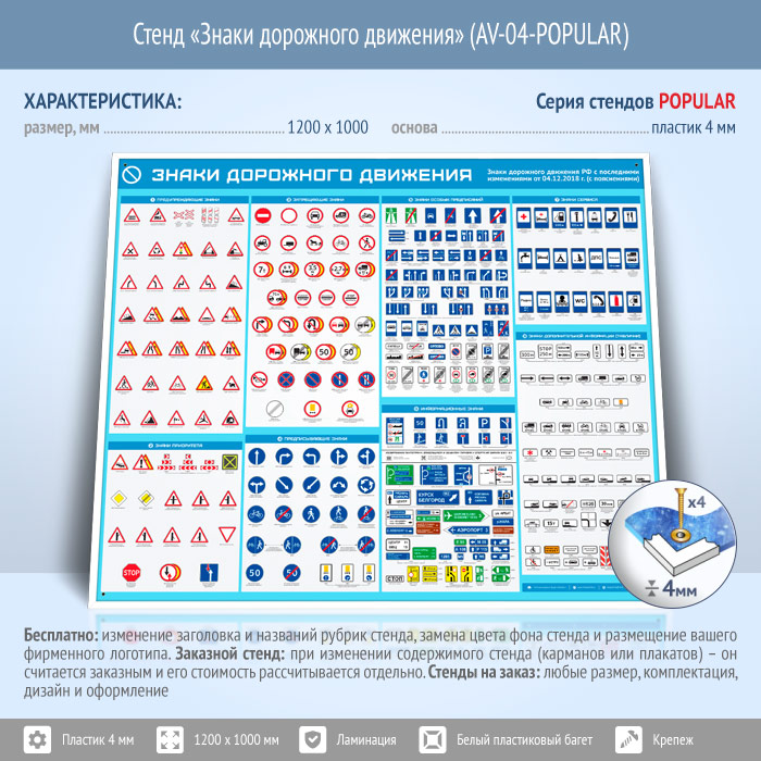 Стенд «Знаки дорожного движения» (AV-04-POPULAR) в Верее купить