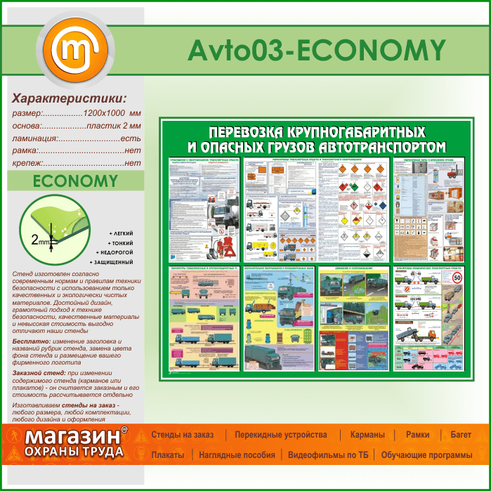 Стенд «Перевозка крупногабаритных и опасных грузов автотранспортом» (AV-03-ECONOMY) в Верее купить