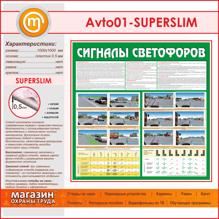 Стенд «Сигналы светофоров» (AV-01-SUPERSLIM) в Верее купить