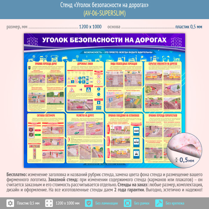Стенд «Уголок безопасности на дорогах» (AV-06-SUPERSLIM) в Верее купить