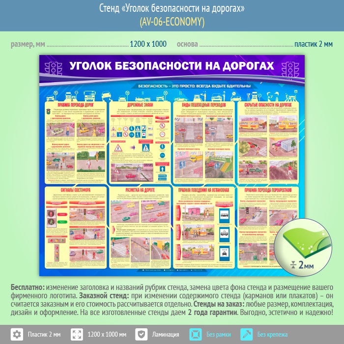 Стенд «Уголок безопасности на дорогах» (AV-06-ECONOMY) в Верее купить