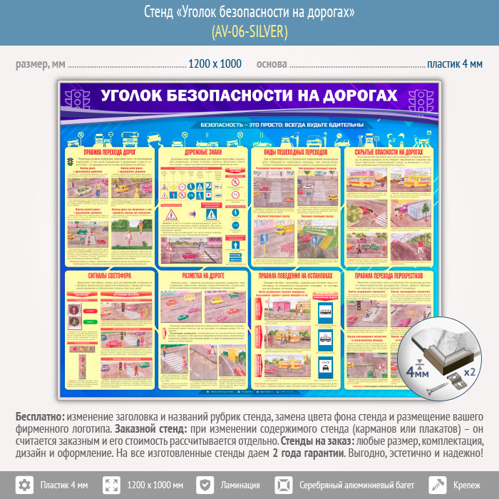 Стенд «Уголок безопасности на дорогах» (AV-06-SILVER) в Верее купить