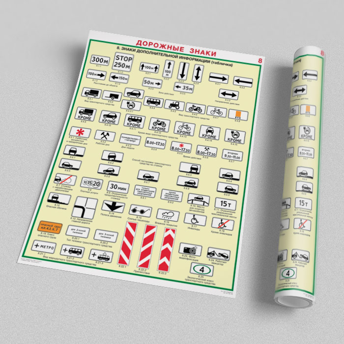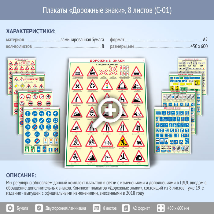 Плакаты «Дорожные знаки» (С-01, ламинированная бумага, А2, 8 листов) в Верее купить