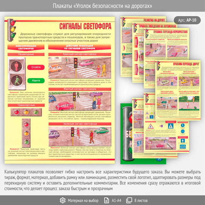 Плакаты «Уголок безопасности на дорогах» (АР-10, 8 листов) в Верее купить