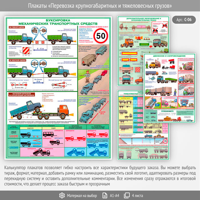 Плакаты «Перевозка крупногабаритных и тяжеловесных грузов» (С-06, 4 листа) в Верее купить