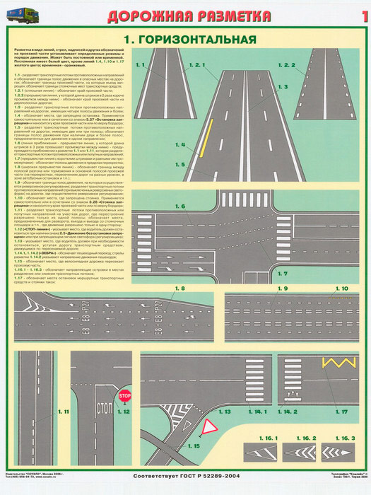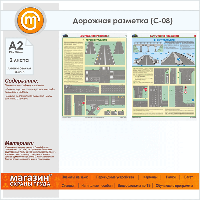 Плакаты «Дорожная разметка» (С-08, ламинированная бумага, А2, 2 листа) в Верее купить