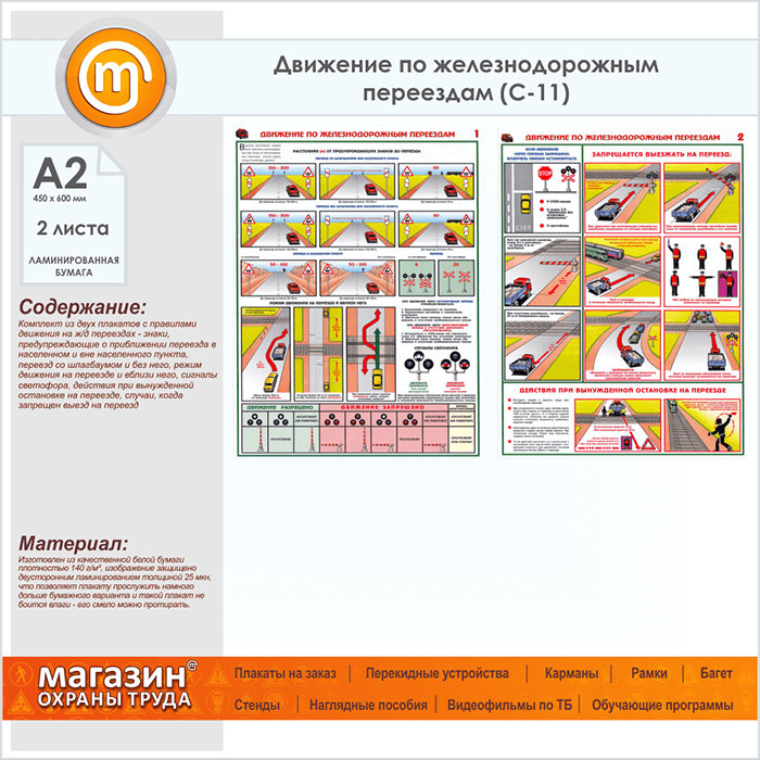 Плакаты «Движение по железнодорожным переездам» (С-11, ламинированная бумага, А2, 2 листа) в Верее купить