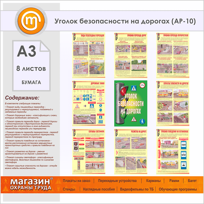 Плакаты «Уголок безопасности на дорогах» (АР-10, бумага, А3, 8 листов) в Верее купить