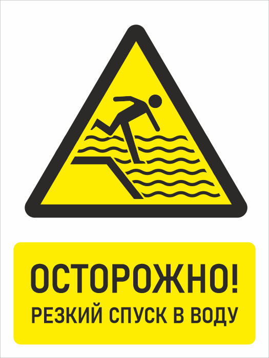 Знак «Осторожно! Резкий спуск в воду», БВ-32 (пластик 4 мм, 300х400 мм) в Верее купить