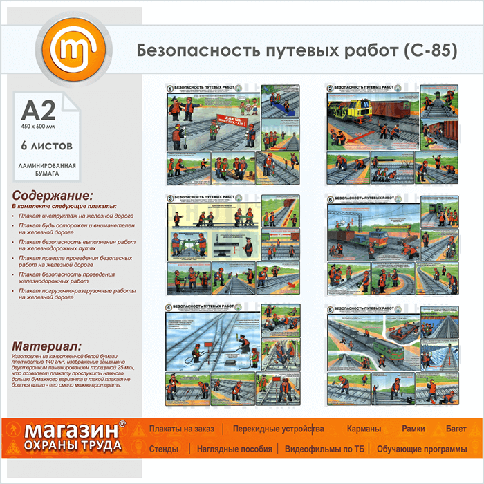 Плакаты «Безопасность путевых работ» (С-85, ламинированная бумага, А2, 6 листов) в Верее купить