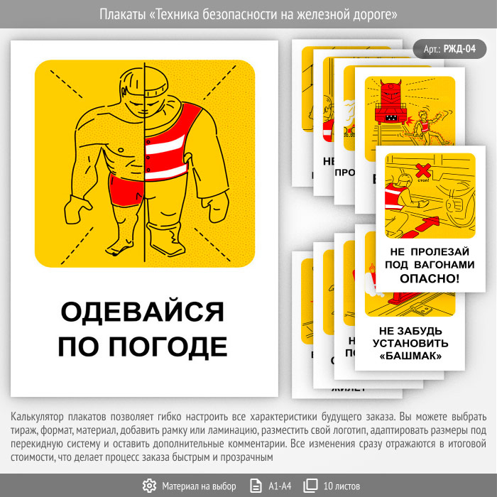 Плакаты «Техника безопасности на железной дороге» (РЖД-04, 10 листов) в Верее купить