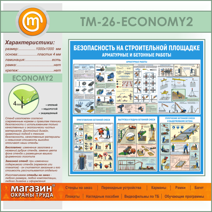 Стенд «Безопасность на строительной площадке. Арматурные и бетонные работы» (TM-26-ECONOMY2) в Верее купить