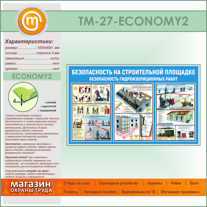 Стенд «Безопасность на строительной площадке. Безопасность гидроизоляционных работ» (TM-27-ECONOMY2) в Верее купить
