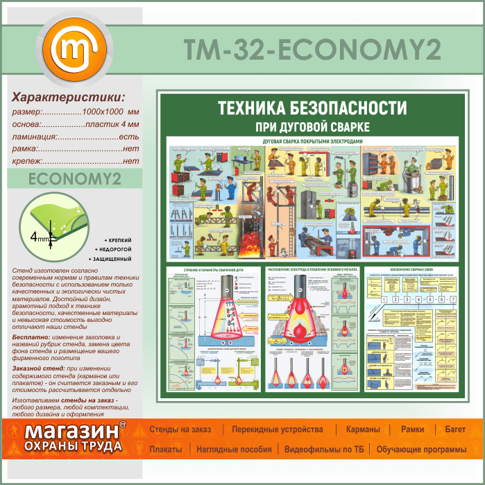 Стенд «Техника безопасности при дуговой сварке» (TM-32-ECONOMY2) в Верее купить