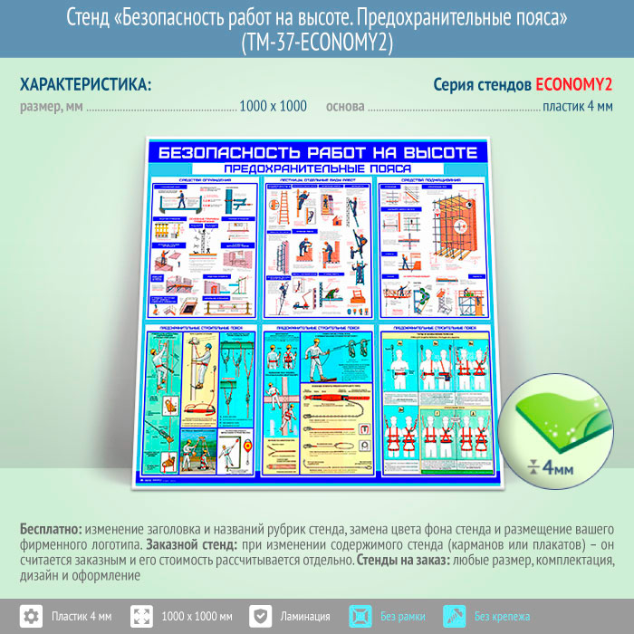 Стенд «Безопасность работ на высоте. Предохранительные пояса» (TM-37-ECONOMY2) в Верее купить
