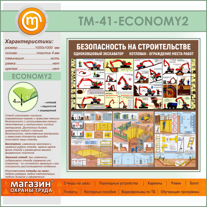 Стенд «Безопасность земляных работ. Экскаватор, котлован» (TM-41-ECONOMY2) в Верее купить