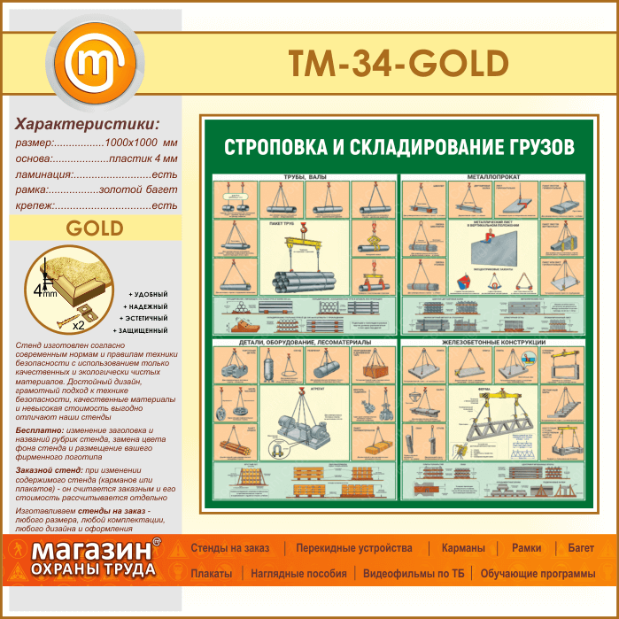 Стенд «Строповка и складирование грузов» (TM-34-GOLD) в Верее купить