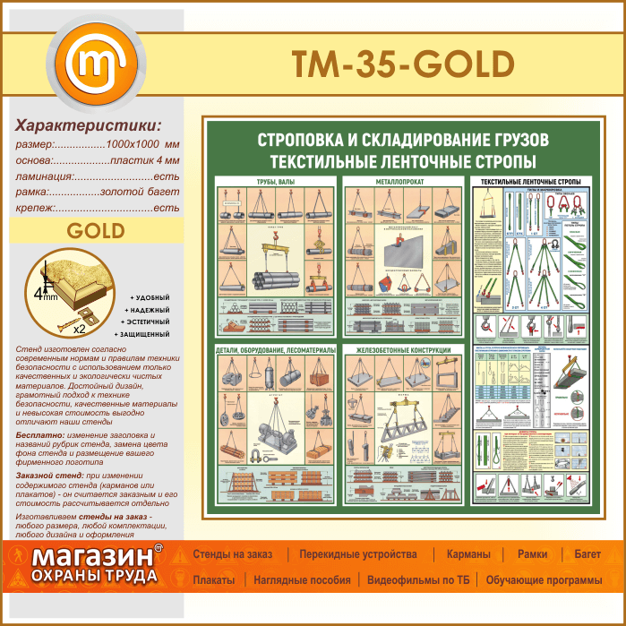 Стенд «Строповка и складирование грузов. Текстильные ленточные стропы» (TM-35-GOLD) в Верее купить