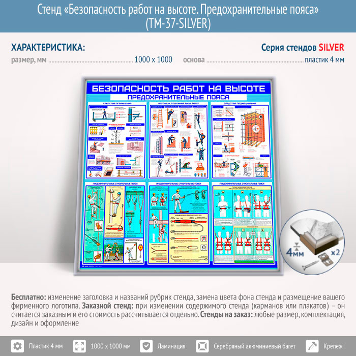 Стенд «Безопасность работ на высоте. Предохранительные пояса» (TM-37-SILVER) в Верее купить