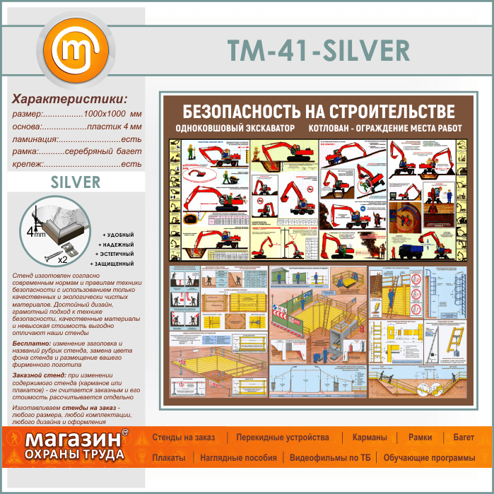 Стенд «Безопасность земляных работ. Экскаватор, котлован» (TM-41-SILVER) в Верее купить
